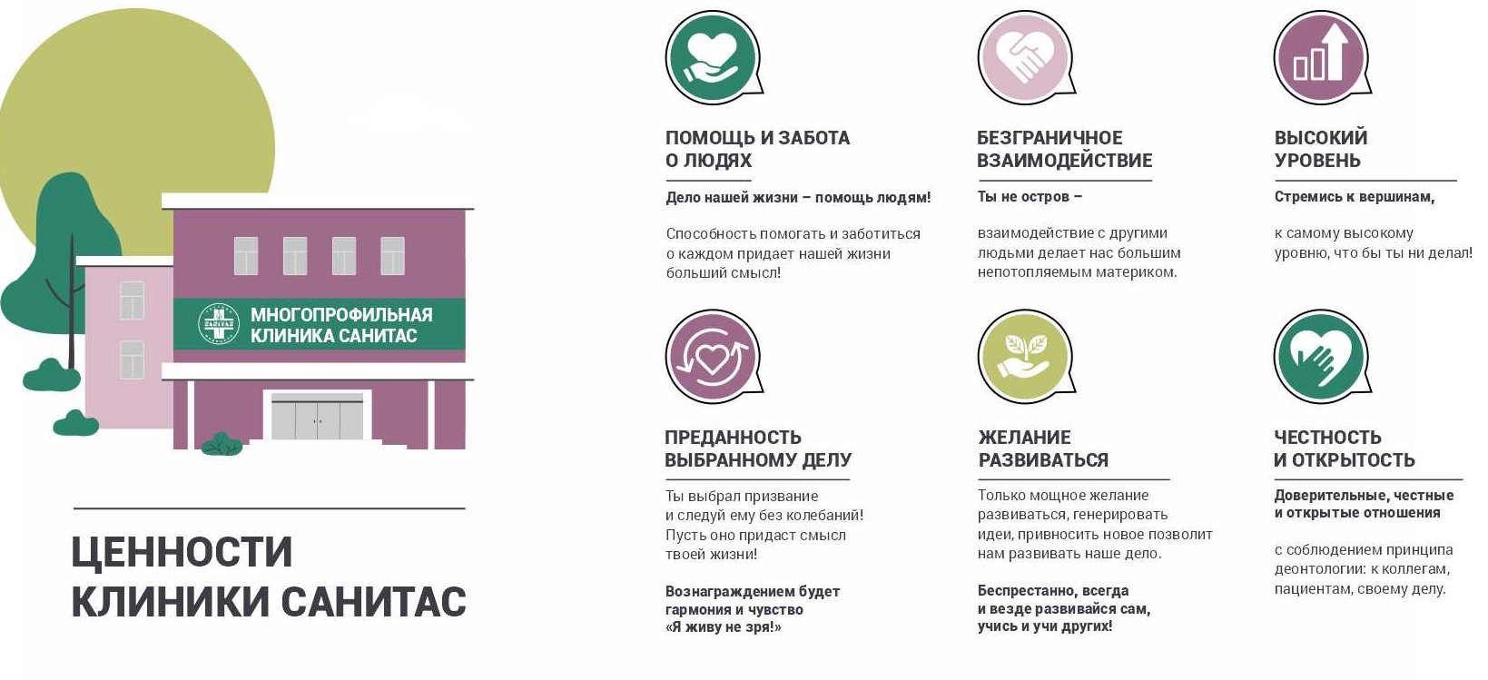 "Санитас" – это многопрофильная клиника с 33-летним опытом, где ценят профессионализм и заботу о людях. У нас 7 филиалов, более 700 сотрудников и мы продолжаем расти.